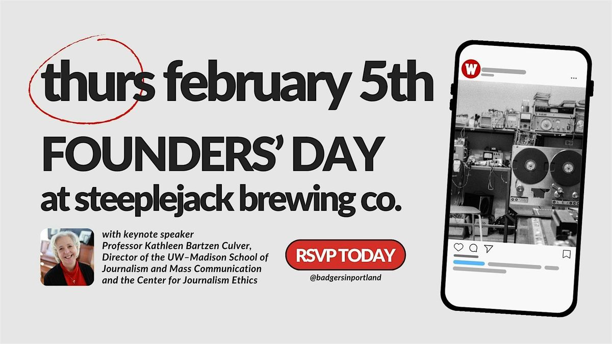 Celebrate Wisconsin Founders' Day with the Portland, Oregon Chapter at Steeplejack Brewing! It's an exciting opportunity to connect with fellow alumni and enjoy a keynote address by Professor Kathleen Bartzen Culver, Director of the UW–Madison School of Journalism and Mass Communication and the Center for Journalism Ethics. Our event is a networking and community building young professional and proud alumni based in Oregon. We raise money for college scholarships for Oregon high school students attending University of Wisconsin-Madison in the future.