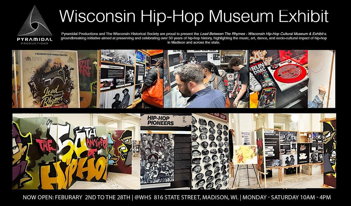 Pyramidal Productions, in partnership with the Wisconsin Historical Society (WHS), is proud to announce the return and Grand reopening of “The Lead Between the Rhymes: Wisconsin Hip-Hop Cultural Museum & Exhibit –Expanded. Celebrating Over 50 Years of Hip Hop Culture in Wisconsin, located in the first floor lobby of the WHS Headquarters building at 816 State St, Madison, WI 53706, Monday, February 2 through Saturday, February 28 for Black History Month.