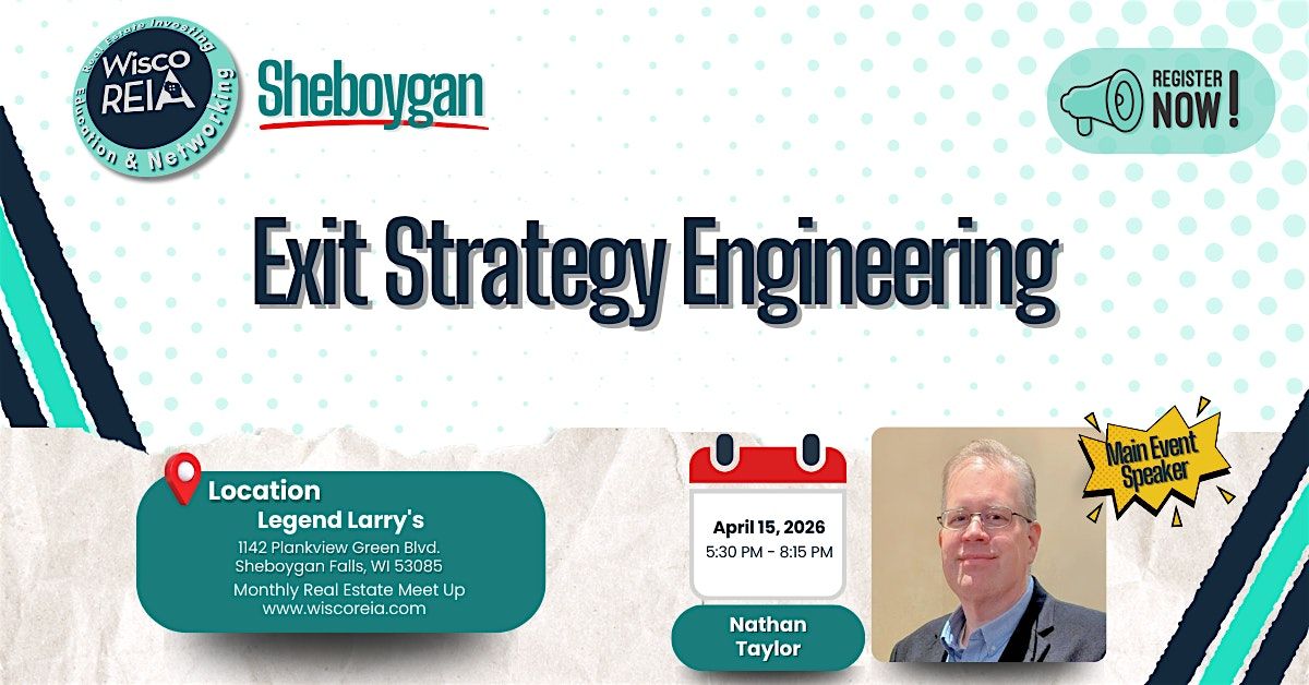 WiscoREIA’s Sheboygan Meeting Always Meets on the 3rd Wednesday of the Month from 5:30 pm to 8:15 pm!