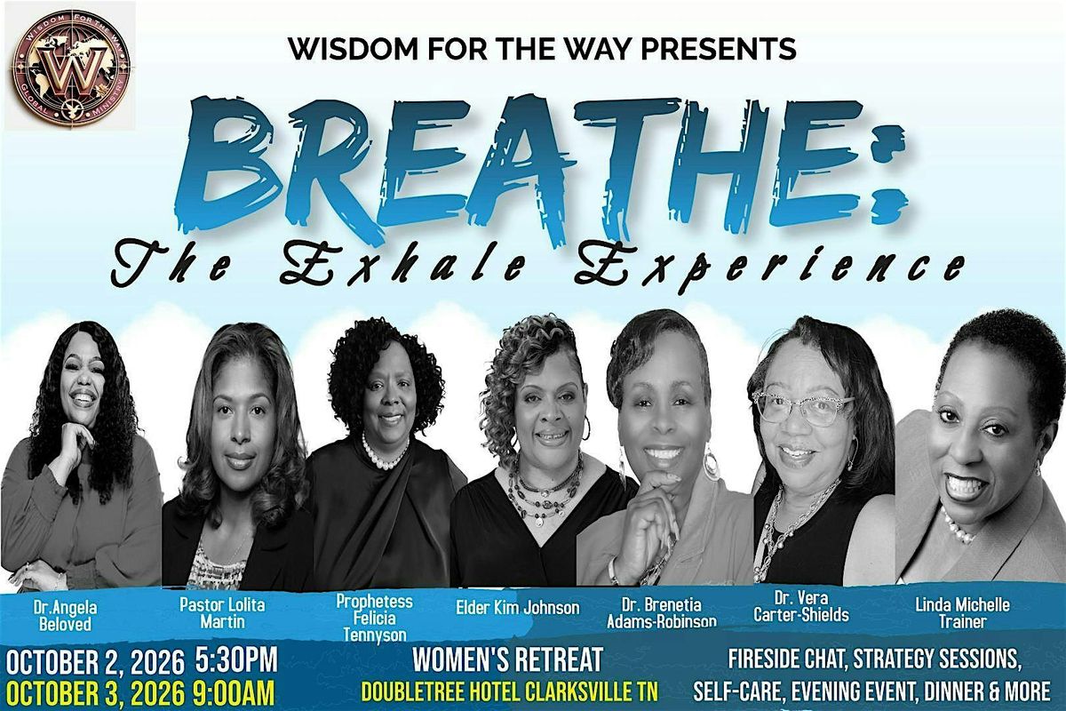 Welcome to WISDOM FOR THE WAY PRESENTS: BREATHE THE EXHALE EXPERIENCE! Join us at 50 College St on October 2, 2026 at 6:00 PM and October 3. 2026 for two days of restoration and rejuvenation. Take a break from the hustle and bustle of life to focus on your spirit, soul, and body. This event is all about maintaining the peace of God in challenging situations and learning to thrive in the midst of chaos. Let's come together to exhale the stress and inhale the truth and love of God. Whether you are a Woman in business, management, caretaker, pastor,pastor's wife, minister's wife, a mother, single or married this is for you. Don't miss out on this opportunity to unwind and connect with others. See you there!