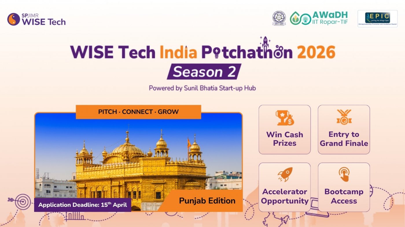 Having already evaluated over 500+ startups across India this year, WISE Tech in collaboration with iHub - AWaDH @ IIT Ropar and EPIC (Entrepreneurship Promotion and Incubation Council) is now bringing the WISE Tech India Pitchathon to Punjab.