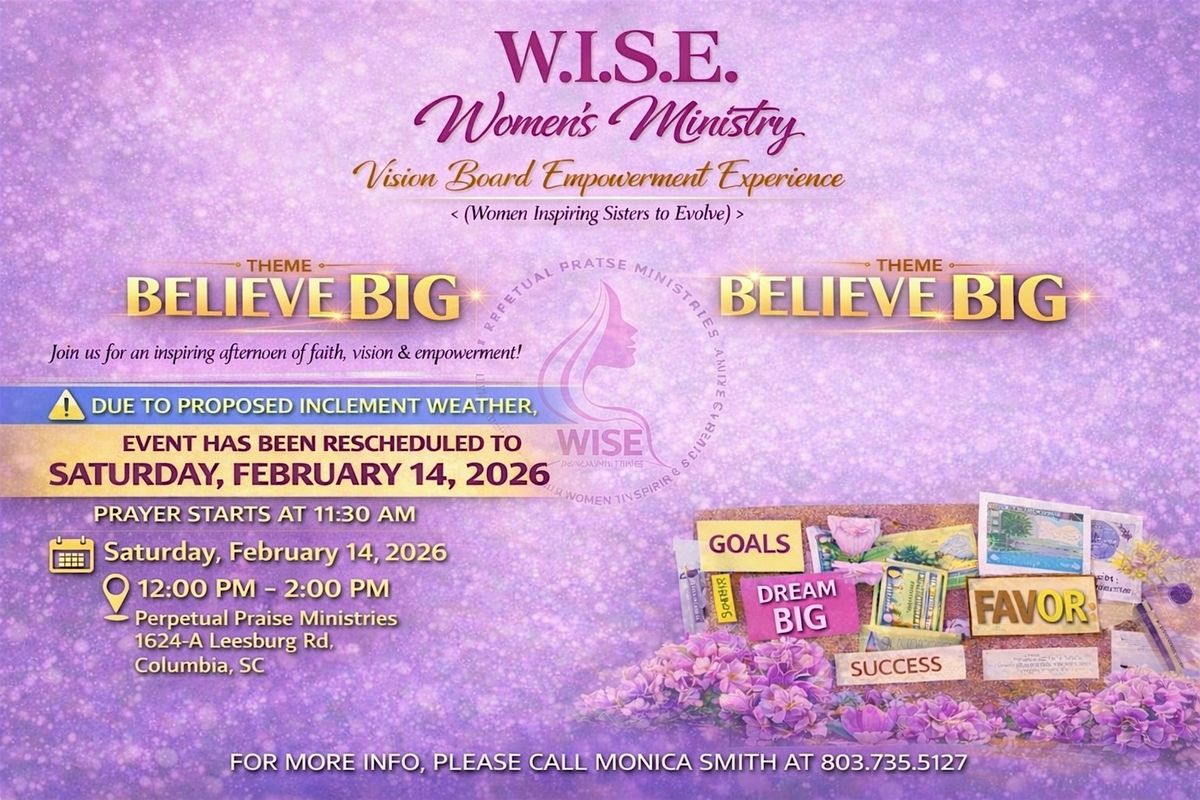 RESCHEDULED:This will be a time of building sisterhood through connection, encouragement, prayer, and prophetic insight, as we BELIEVE BIG!!
