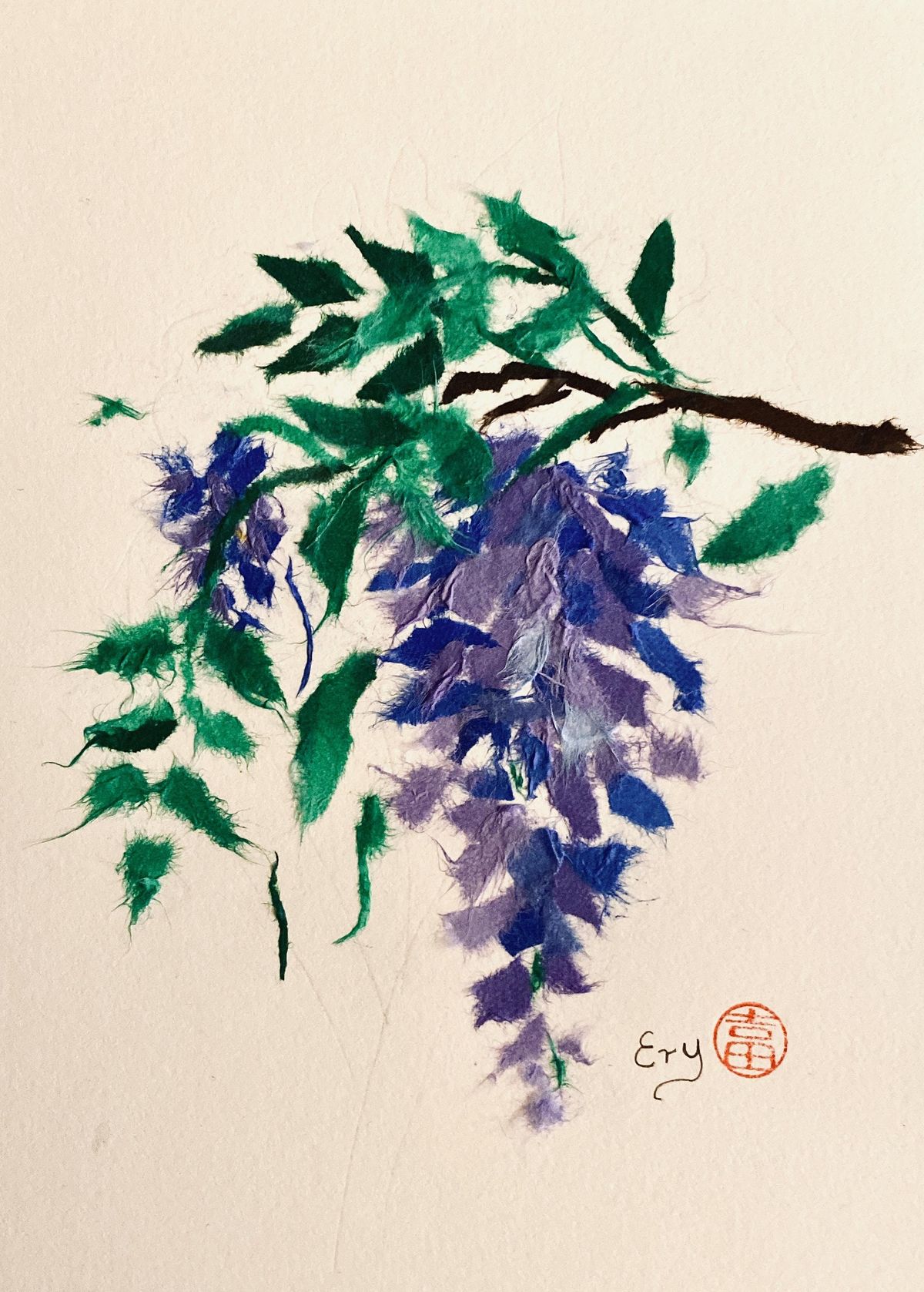 This traditional collage technique has been used for centuries in Japan. We will use colored mulberry paper to create beautiful wisteria on heavyweight Mixed Media paper. Works will be matted at the end of the workshop.