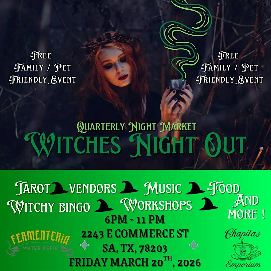 Come my pretties! We are back for our quarterly Witches Night Out brought to you by Chapitas Emporium! Let me take the away to a wonderous night of witchy fun! Enjoy tarot readings, enchanting bingo, ethereal artisans, and more! Witches and familiars of all ages, shapes, and sizes welcome!