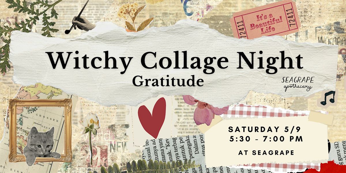 Join us for a monthly in-person Witchy Collage Night at Seagrape Apothecary! Dive into the realm of magic, spells, and self-care with like-minded babes in a cozy and welcoming atmosphere. We'll connect, collage and make new friends.