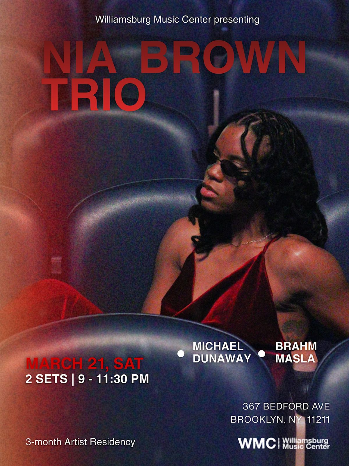 Join us for an unforgettable night of live music as Nia Brown takes the stage at Williamsburg Music Center.