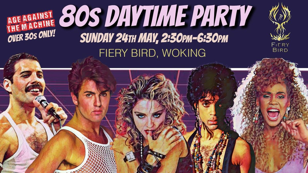 Age Against The Machine are coming to The Fiery Bird, Woking with one of our special over 30s only daytime parties dedicated entirely to 1980s and the great music it gave us, for a special charity event with all profits going to the venue.Expect to hear all those bangers you listened to on 7", watched on Top of Pops, read about in Smash Hits and taped on to your C60 cassette on a Sunday evening during the top 40 charts rundown. There'll be pop, dance, new romantic, electro, hip-hop, disco, indie, ska, movie soundtracks, soul and even a bit of Stock, Aitken & Waterman. Something for everyone.