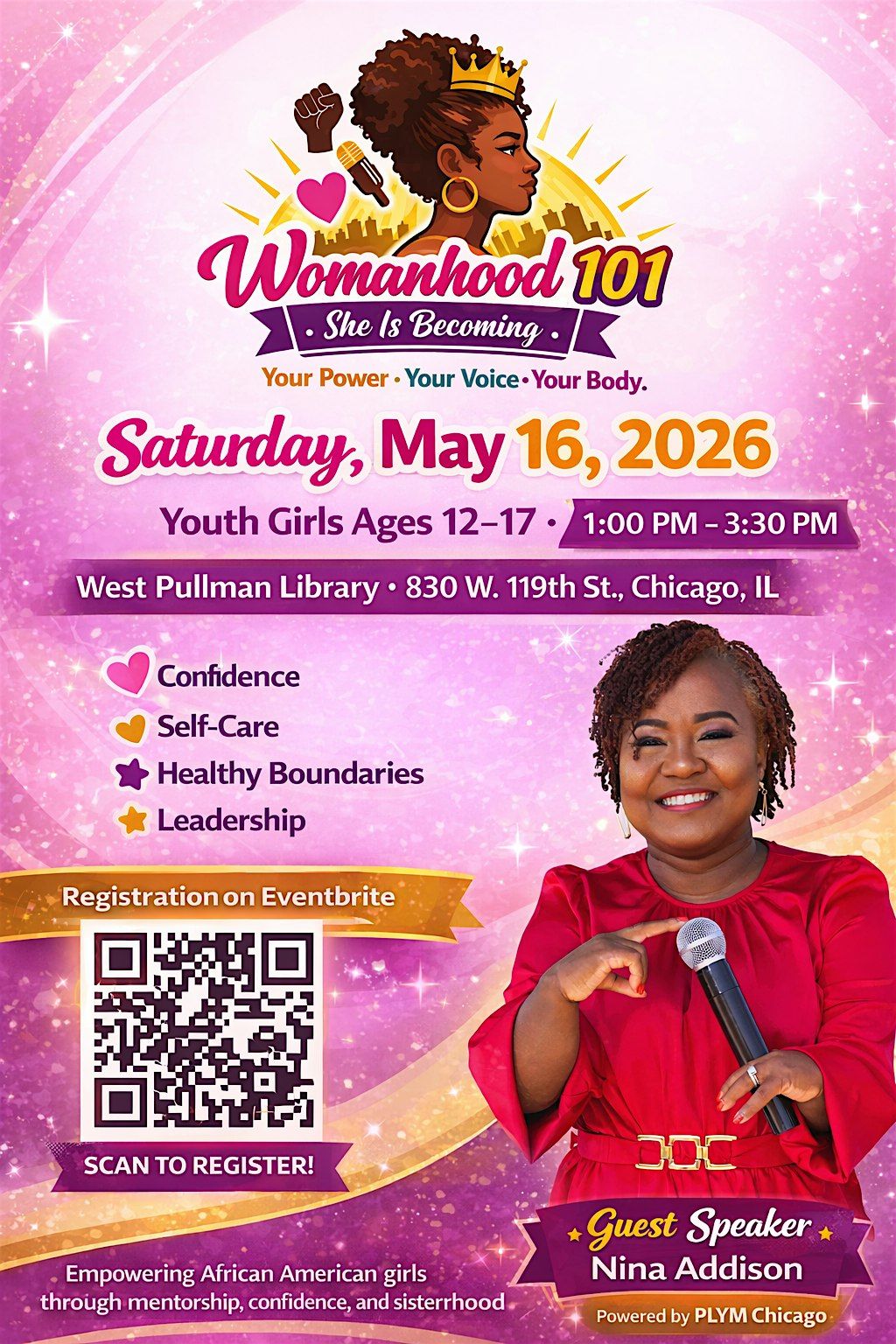 Womanhood 101 is a culturally affirming empowerment workshop designed especially for African American girls ages 12–17. This engaging and supportive session provides a safe space for young girls to learn, ask questions, and grow with confidence as they navigate the changes of adolescence.