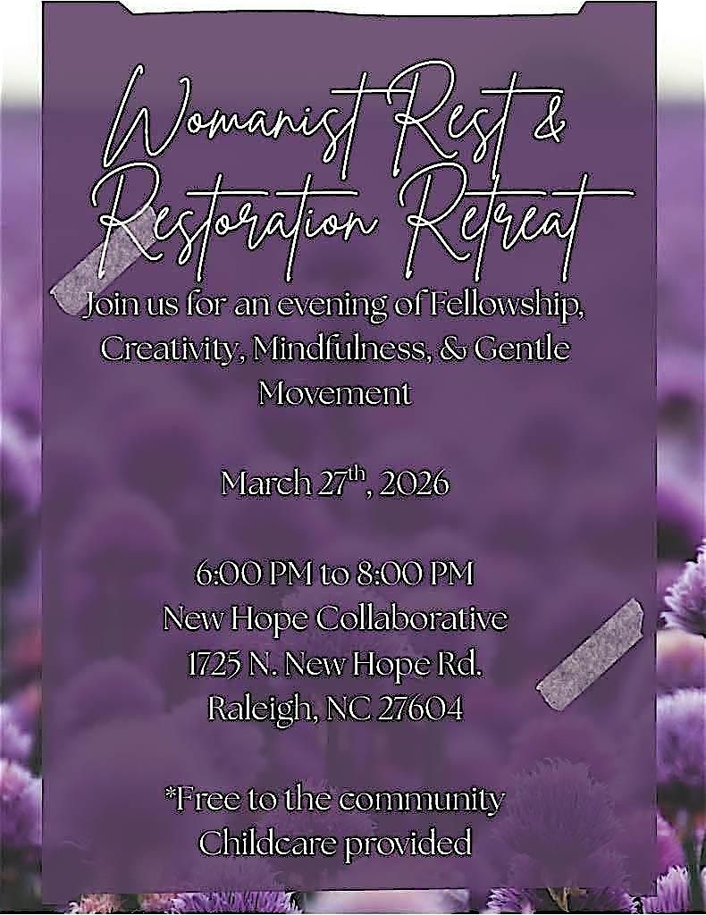 Join us for an evening intentionally designed to honor rest as sacred, resistance, and renewal. Rooted in womanist theology and wisdom, this gathering affirms that our bodies, stories, and breath matter—and that rest is not a luxury, but a spiritual practice woven into survival, healing, and joy. In a world that constantly demands our labor and resilience, we gather to reclaim rest as holy ground.