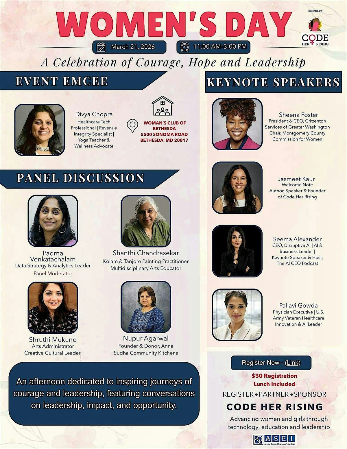 Join us for an inspiring Women’s Day gathering celebrating courage, hope, and leadership in our communities and beyond.