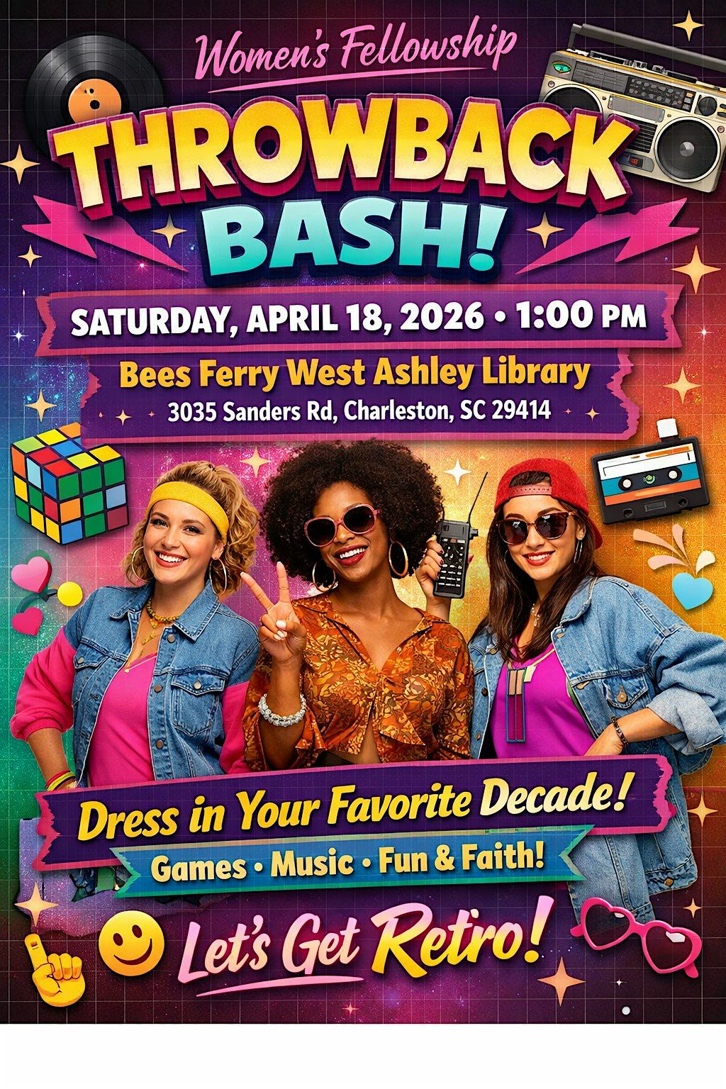 Come dressed in your favorite decade…whether it’s 70s, 80s, 90s, or early 2000s—and get ready for games, music, and have fun together .