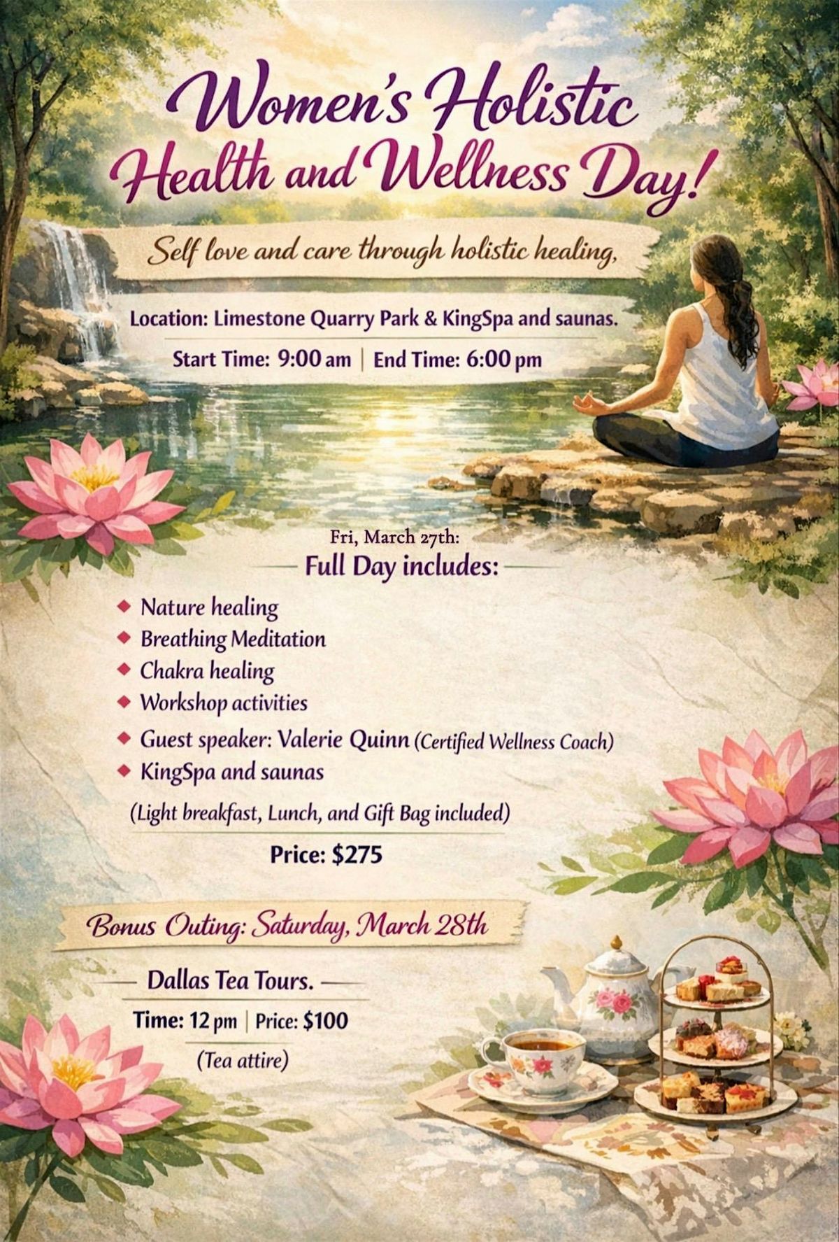 Your wellness day starts at Limestone Quarry Park in Frisco, TX. Start out with a nature walk, grounding exercise, breathing meditation, chakra healing, activities, and light breakfast. Then we move on to KingSpa and Saunas for the rest of the day. Entrance fee and lunch included. Enjoy multiple saunas, hydrotherapy pools, hot and cold plunges.