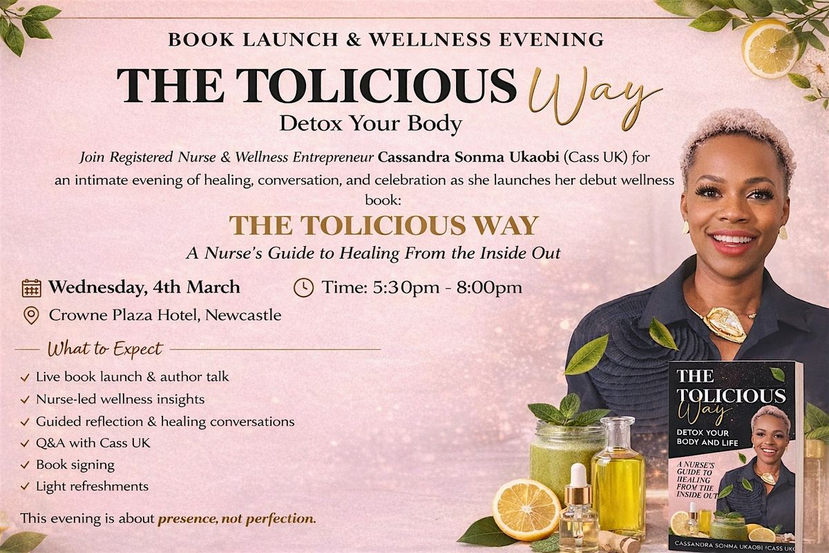 Info: Join us for an intimate and elevated wellness evening as Registered Nurse and Wellness Entrepreneur Cassandra Sonma Ukaobi (Cass UK) launches her debut book, The Tolicious Way: A Nurse’s Guide to Healing From the Inside Out. This beautifully curated experience is designed for women ready to pause, reset, and reconnect with themselves in a supportive, elegant space.
