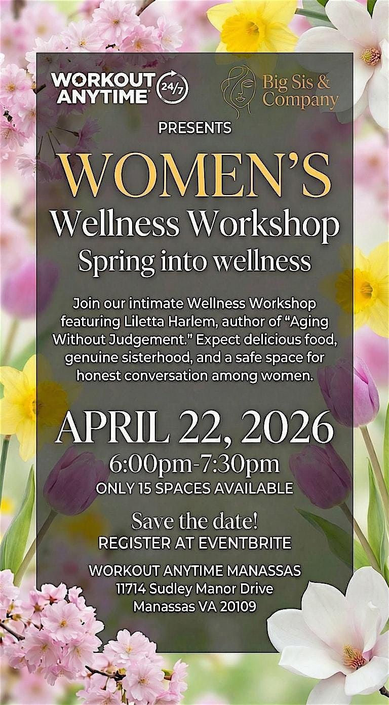 Join Liletta Harlem, author of Aging Without Judgment, speaker, and wellness advocate, for a meaningful experience designed to support women in mind, body, and spirit. This workshop creates a safe, welcoming space for honest conversation, reflection, and sisterhood—free from pressure, comparison, or judgment.