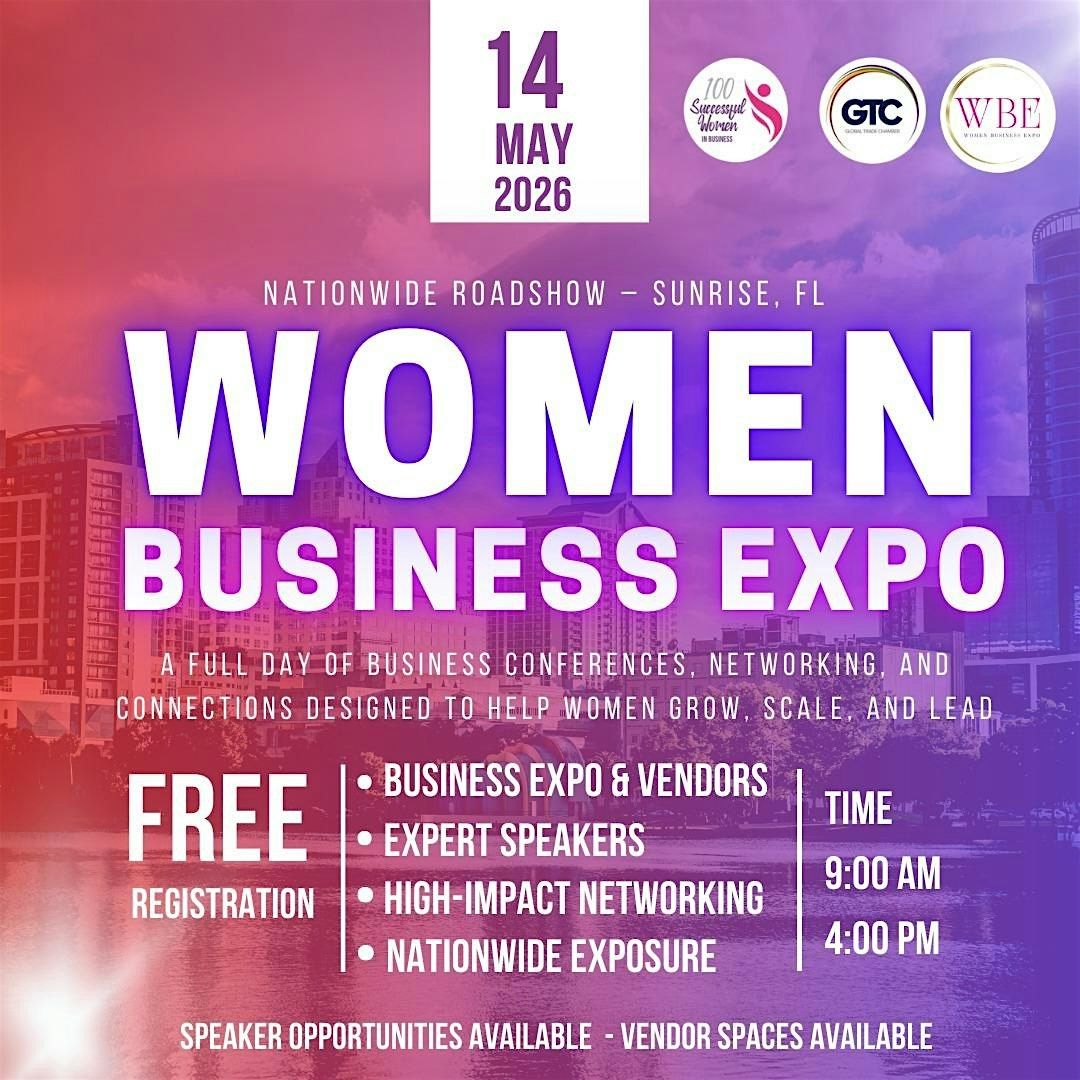 Mark your calendar for May 14, 2026, and join us in Sunrise, Florida, for an empowering day created to spark connections, fuel business growth, and celebrate women leading the way.