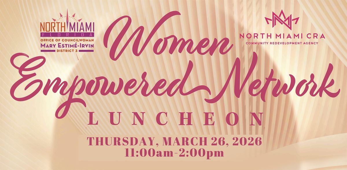 The Women Empowered Network Luncheon is a special gathering dedicated to celebrating, uplifting, and connecting women in the North Miami community. Hosted by the Office of Councilwoman Mary Estimé-Irvin in partnership with the North Miami CRA, this inspiring luncheon will feature meaningful conversations, networking opportunities, and a shared commitment to empowering women in leadership, business, and community. Attendees will enjoy an afternoon of connection, encouragement, and celebration of women’s impact across North Miami.