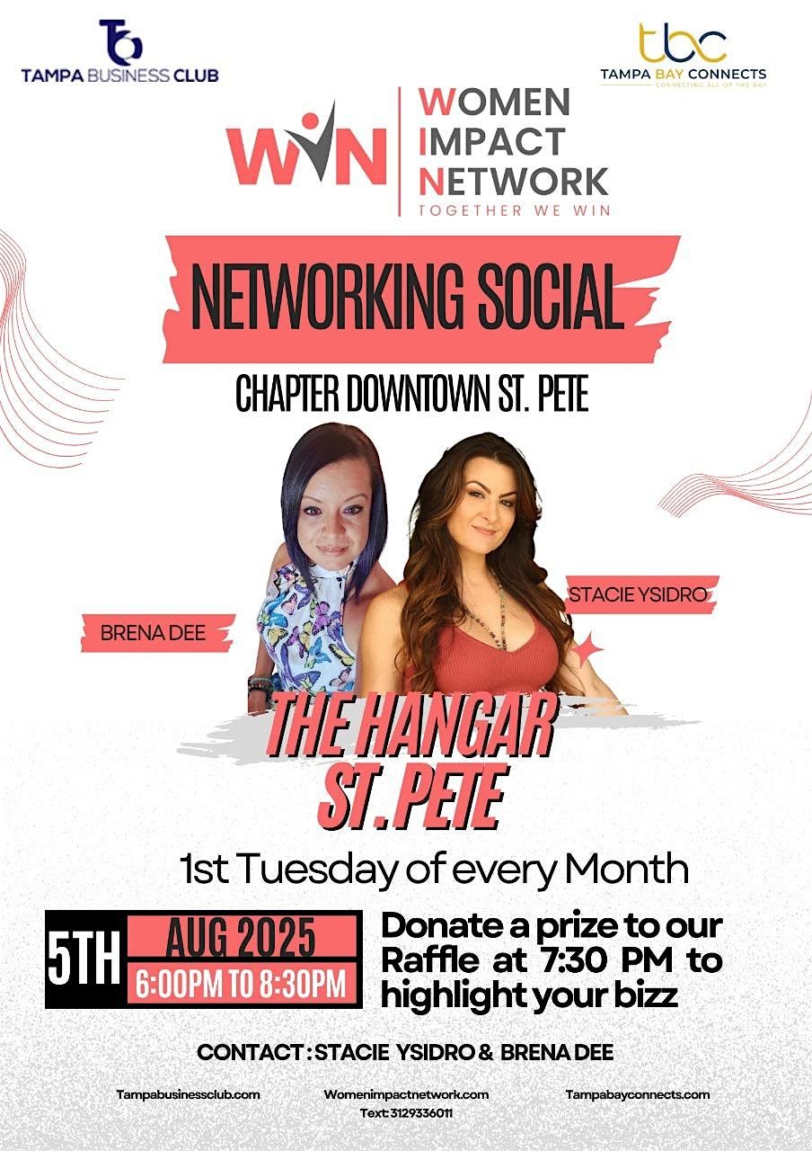 Welcome to the Women Impact Network Networking Social DTSP event! Join us for a night of networking and socializing with like-minded women in the community. This in-person event will take place at The Hangar Restaurant & Flight Lounge on the 1st Tuesday of every month. at 6:00 PM. Come meet new friends, make valuable connections, and enjoy a fun evening out. Admission is free, so don't miss out on this opportunity to connect with other women who are making an impact in their fields. See you there!