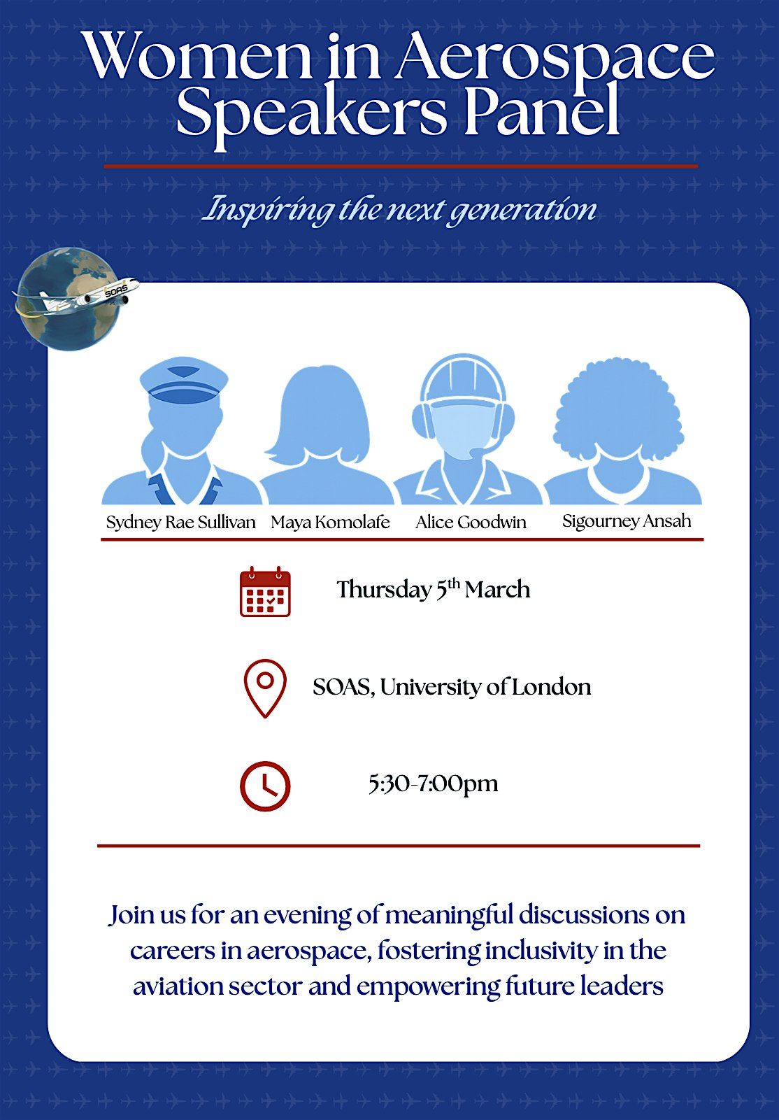 Join us in person for an inspiring event featuring leading women in aerospace sharing their journeys, challenges and accomplishments. This panel is your chance to hear firsthand stories, ask questions, learn of career opportunities in the industry and connect with likeminded individuals. Whether you’re curious about aerospace or dreaming of a career in the skies, this event is for you!