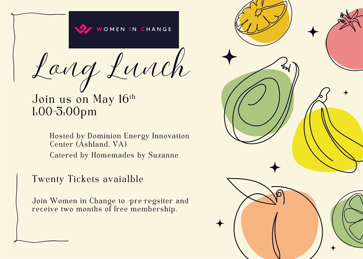 Join us on May 16, 2026 at 1:00 PM (EDT) for a relaxed and inspiring afternoon at the DEIC - Dominion Energy Innovation Center. This is a great chance to connect with amazing women driving change. Come hungry for great food by women-owned business, Homemades by Suzanne. Enjoy great conversations and new opportunities. Donβt miss out on this in-person event designed to celebrate and empower women making a difference.