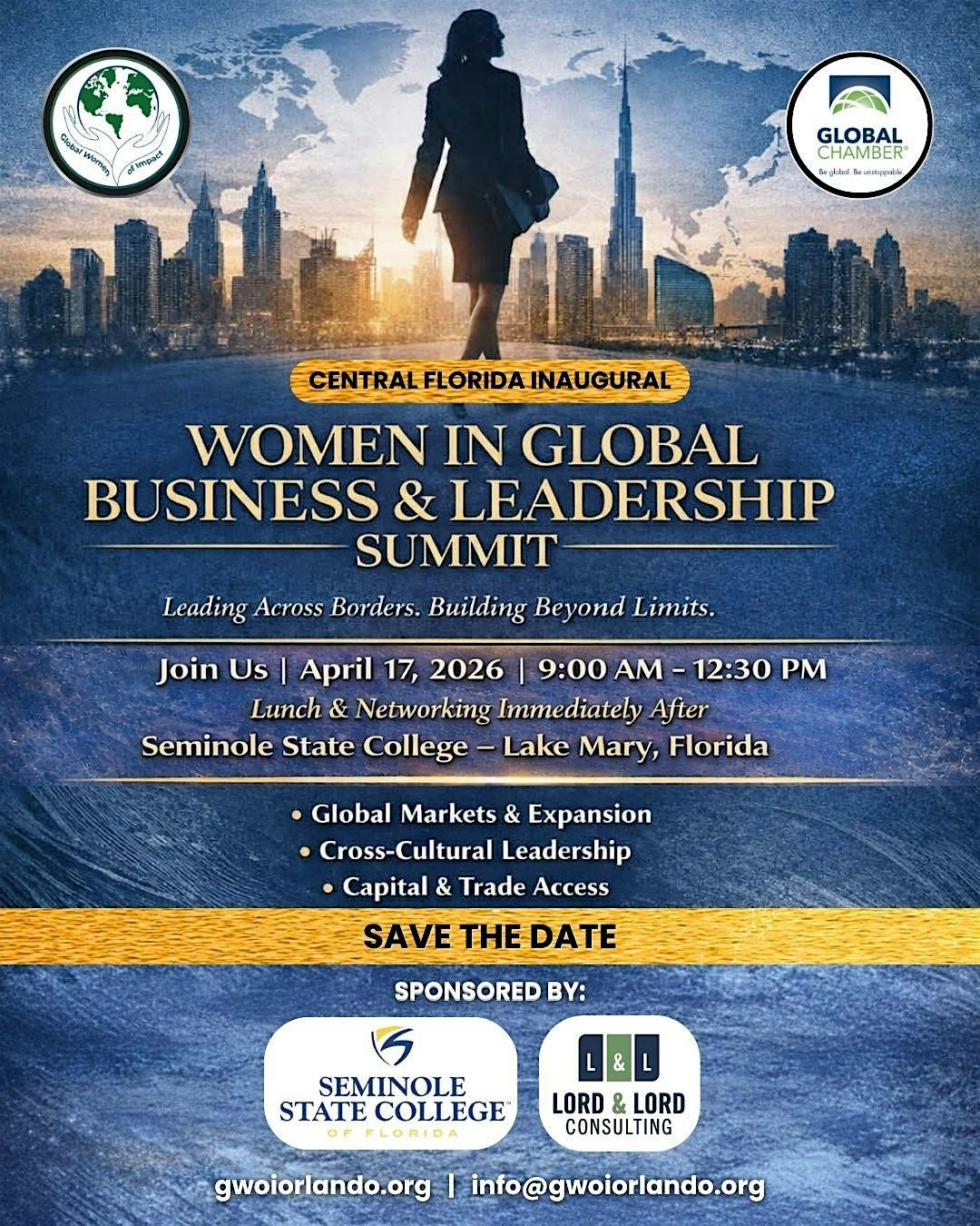 Join us on April 17, 2026 at 9:00 AM (Eastern Time) for an inspiring day at Seminole State College - Sanford/Lake Mary Campus. Connect with amazing women leaders, share ideas, and boost your global business skills in a fun, supportive environment. Whether you're starting out or leading the way, this summit is all about empowerment and growth. Don't miss out on this awesome opportunity to network and learn!