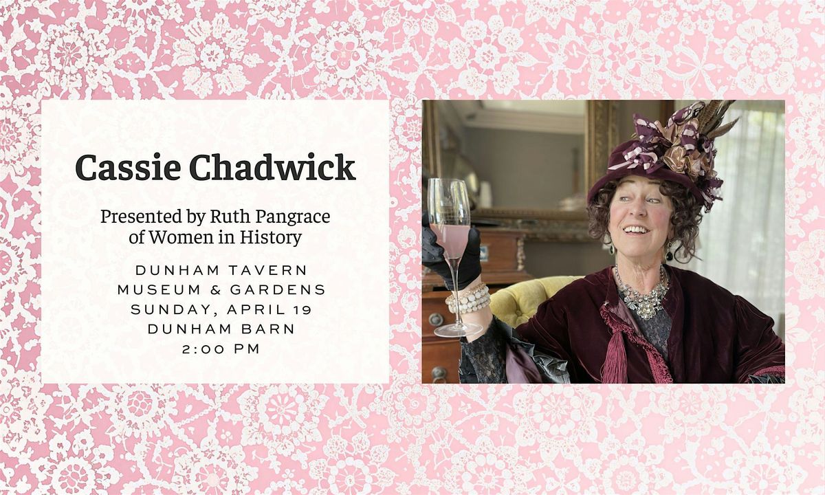 Women in History is a local group of actresses who portray notable American women from our country's history. Cassie Chadwick may not have the positive qualities of many of the women the group portrays, but hers is a fascinating and outrageous story!