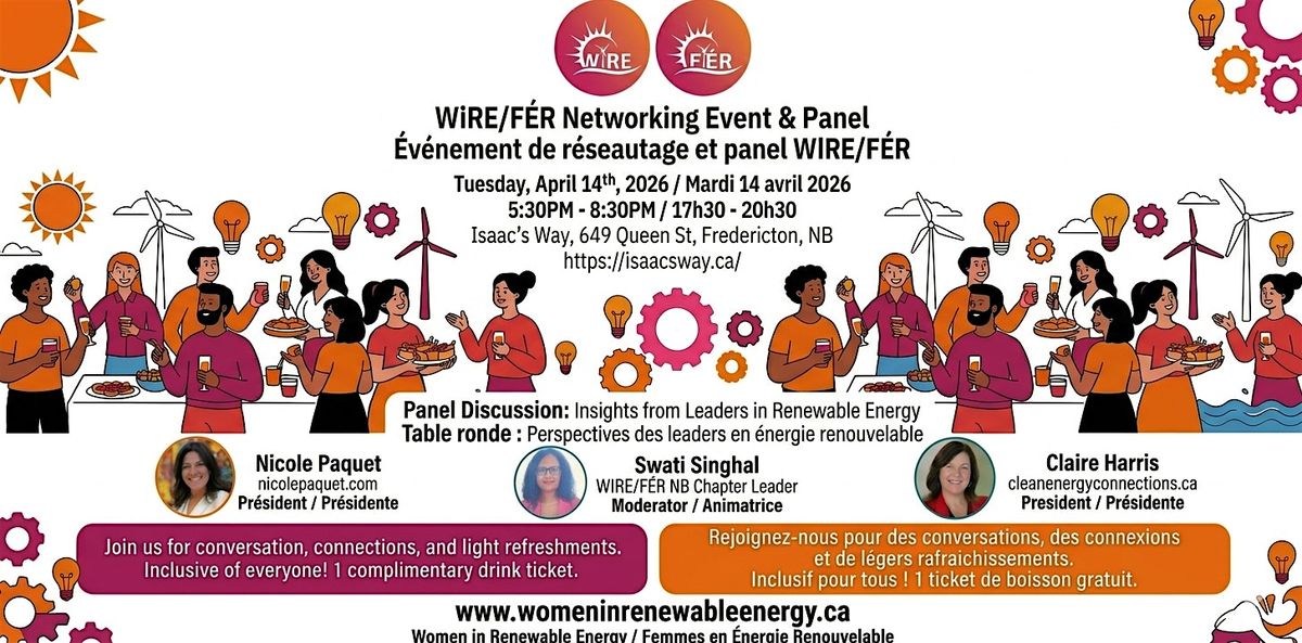 Connect, sip, & spark change! Join WiRE/FÉR NB for an inclusive night of networking & renewable energy insights. 1 free drink & snacks