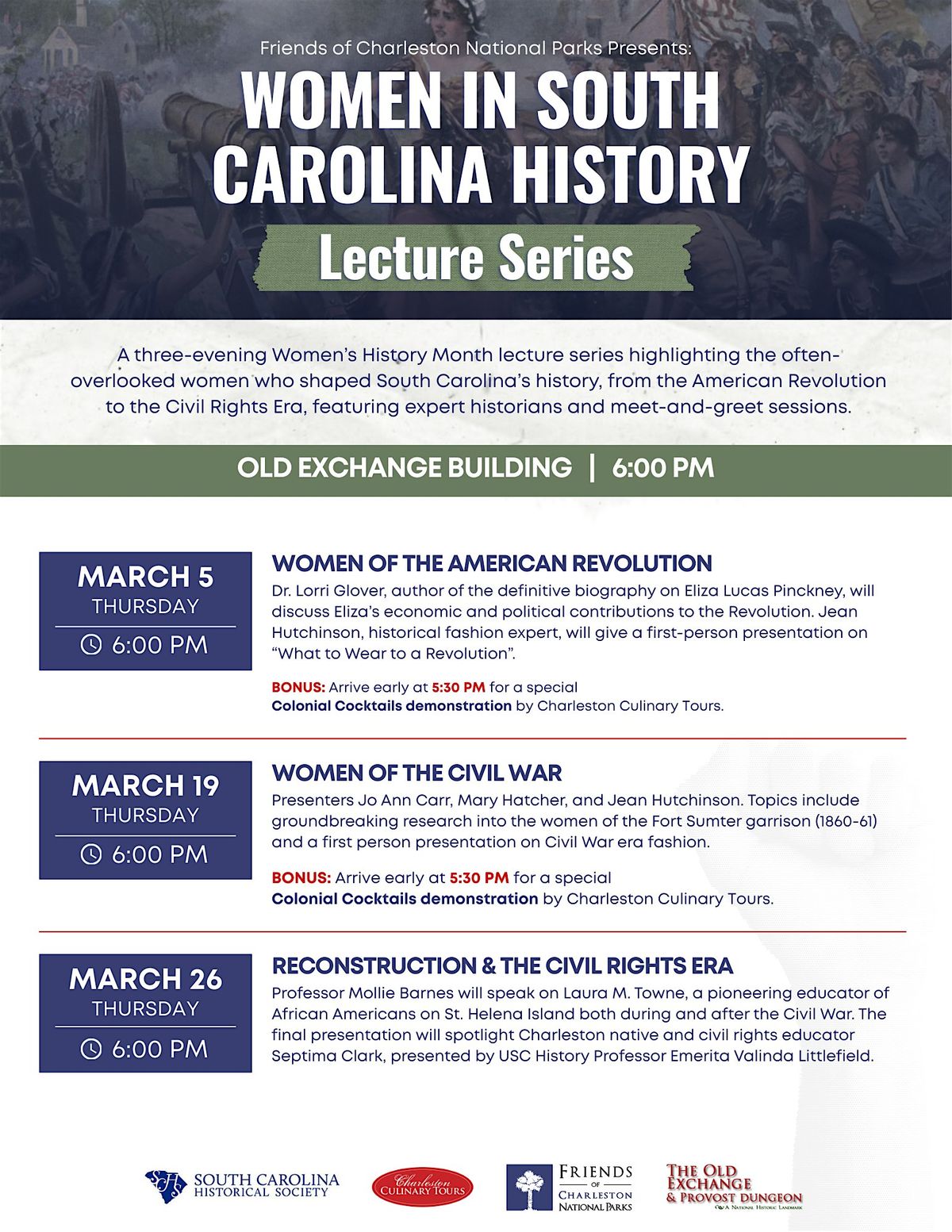 Professor Mollie Barnes will speak on Laura M. Towne, a pioneering educator of African Americans on St. Helena Island both during and after the Civil War. The final presentation will spotlight Charleston native and civil rights educator Septima Clark, presented by USC History Professor Emerita Valinda Littlefield.