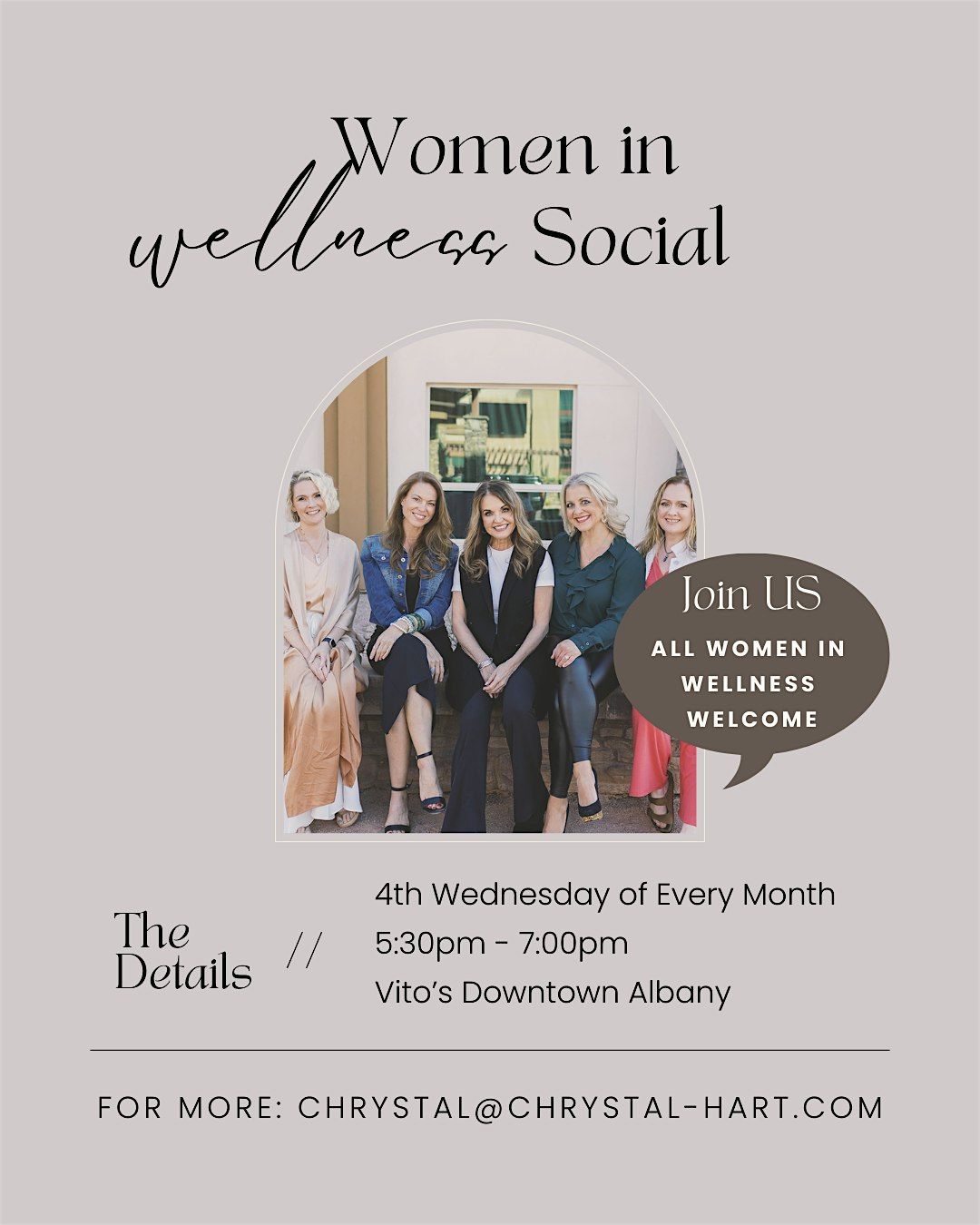 Join us for our monthly Women in Wellness Collective Social Mixer- a relaxed and inspiring evening designed to connect growth-minded women.