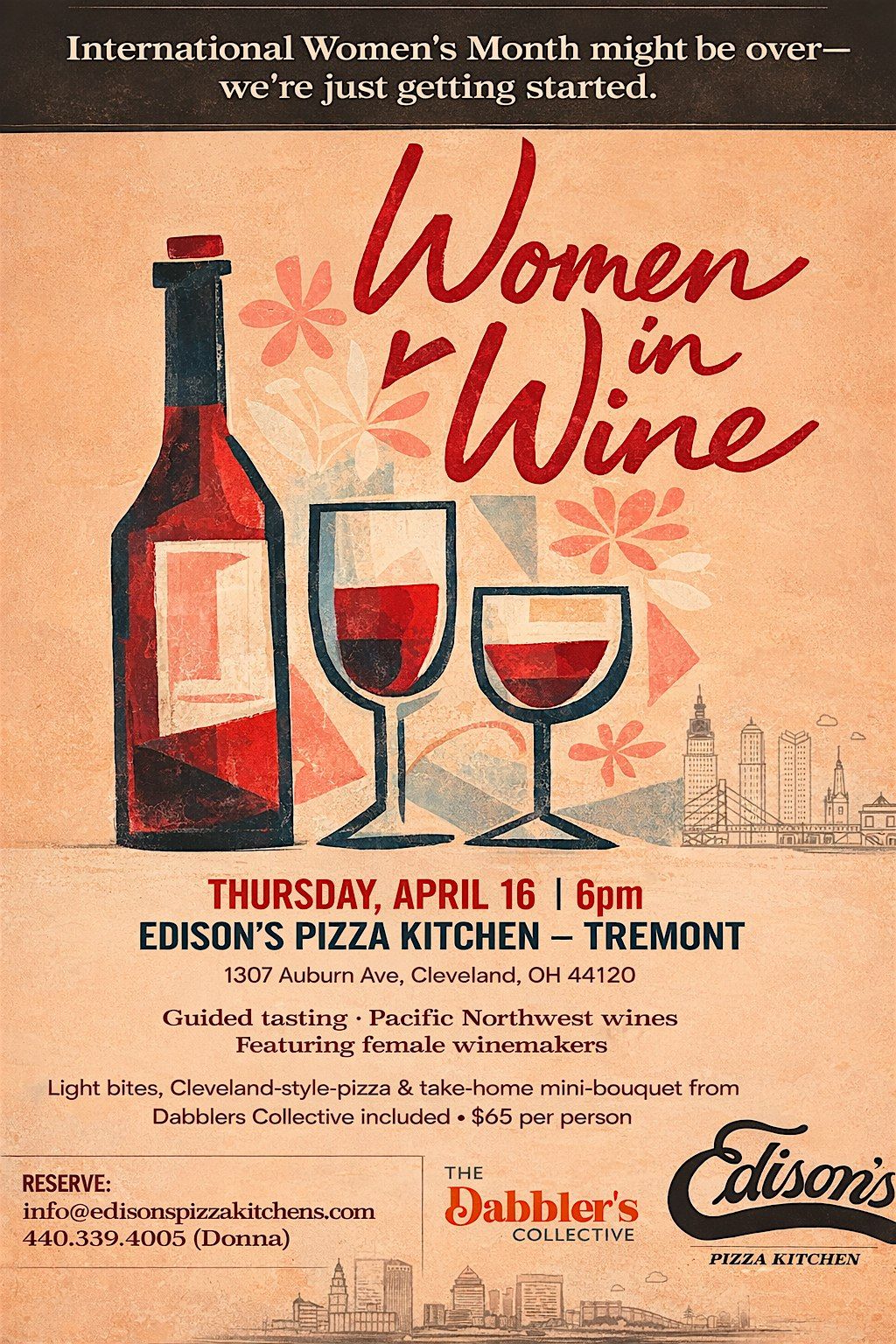 We’ll walk you through each glass (nothing too stuffy), with light bites of your favorite Cleveland-style pizza from Edison’s Pizza to keep you grounded along the way. Because great wine deserves great pizza—and we’ve got opinions on both.