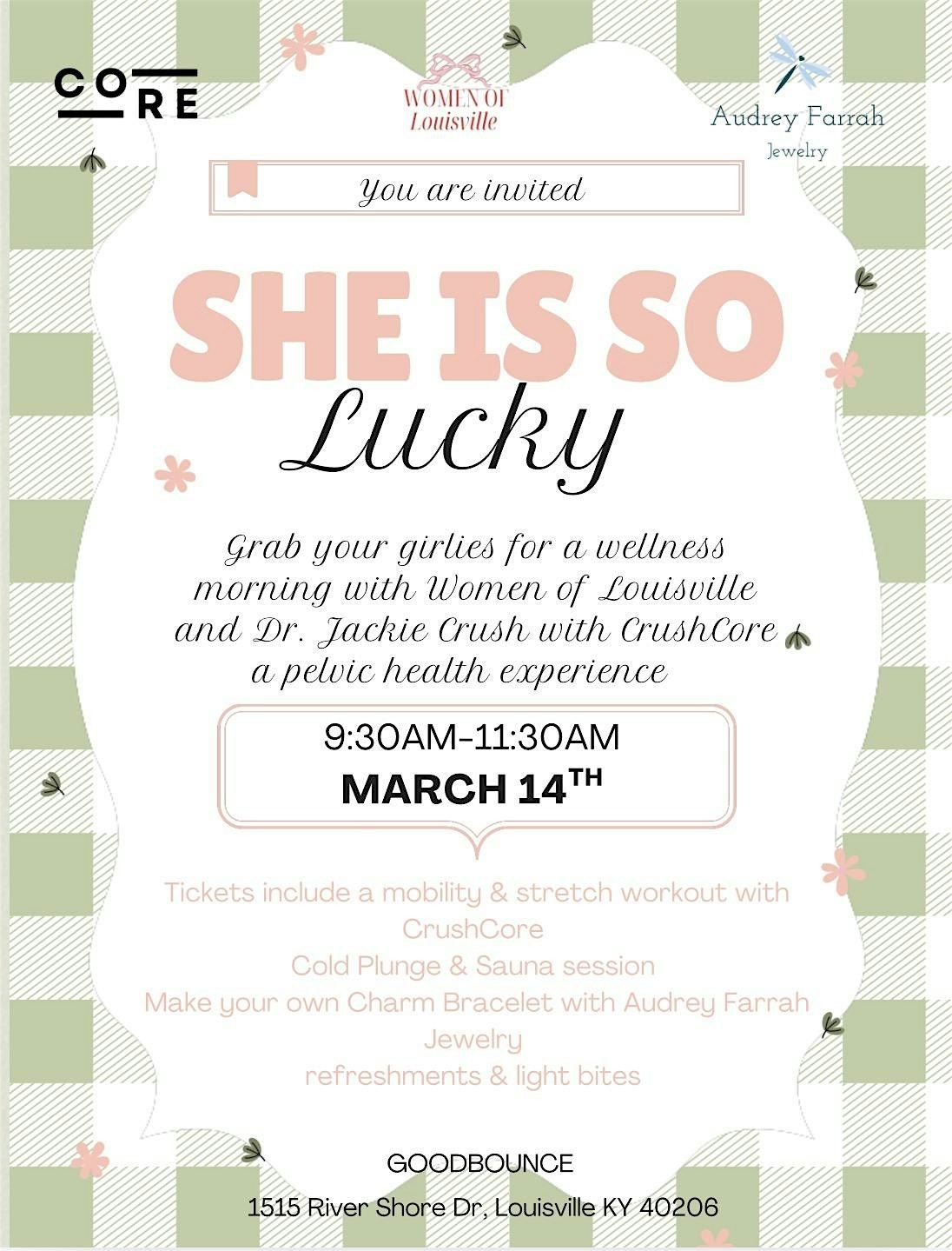 Grab your girlies and join us for a wellness morning designed just for women. We’re teaming up with Dr. Jackie Crush of CrushCore for a pelvic health experience, mobility & stretch workout, cold plunge + sauna session, and a charm bracelet workshop with Audrey Farrah Jewelry.