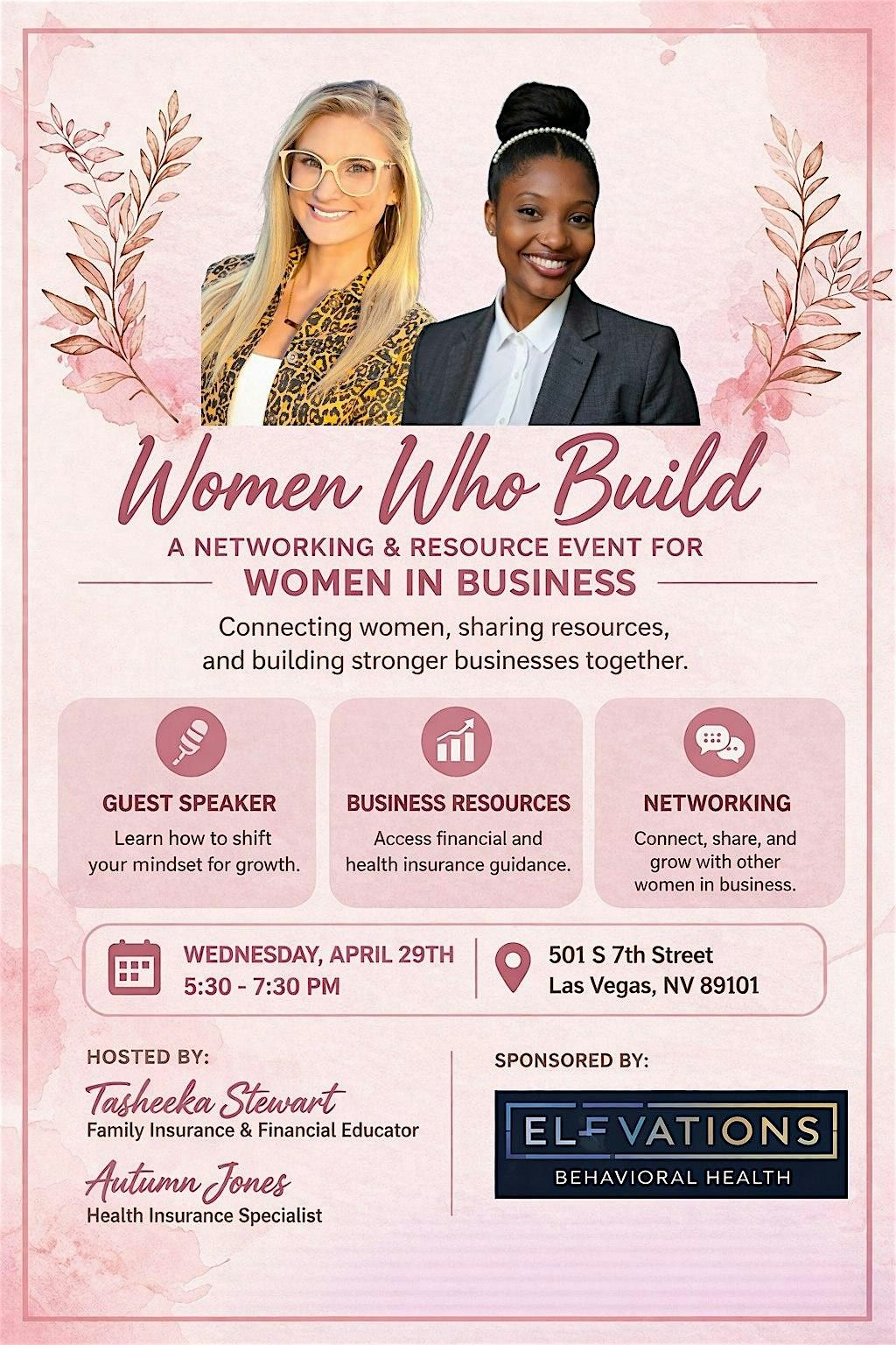 Special thanks to our community sponsor ELEVATIONS BEHAVIORAL HEALTH for hosting this event and supporting women in business.