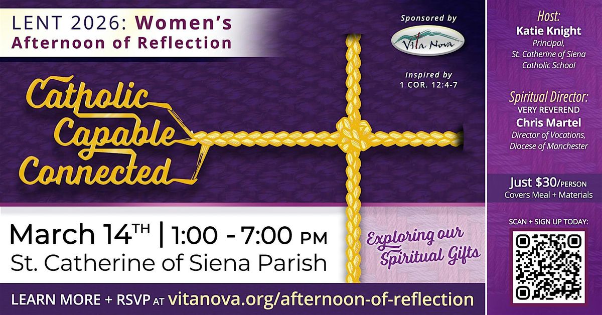 Info: Registration begins at 1:00 PM with light refreshments, followed by an afternoon of inspiring talks and discussions. 4:00 PM Mass in the Church will be followed by dinner and a witness and end the day with Adoration.