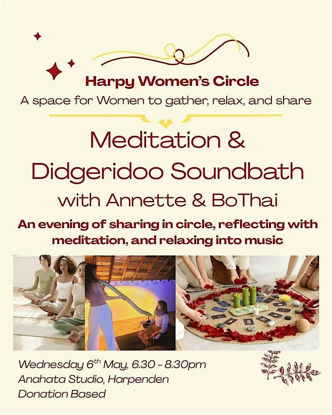 A safe space for women to gather, share, and relax. Featuring an evening of meditation and music soundbath with Didgeridoo from BoThaiAbout this Event