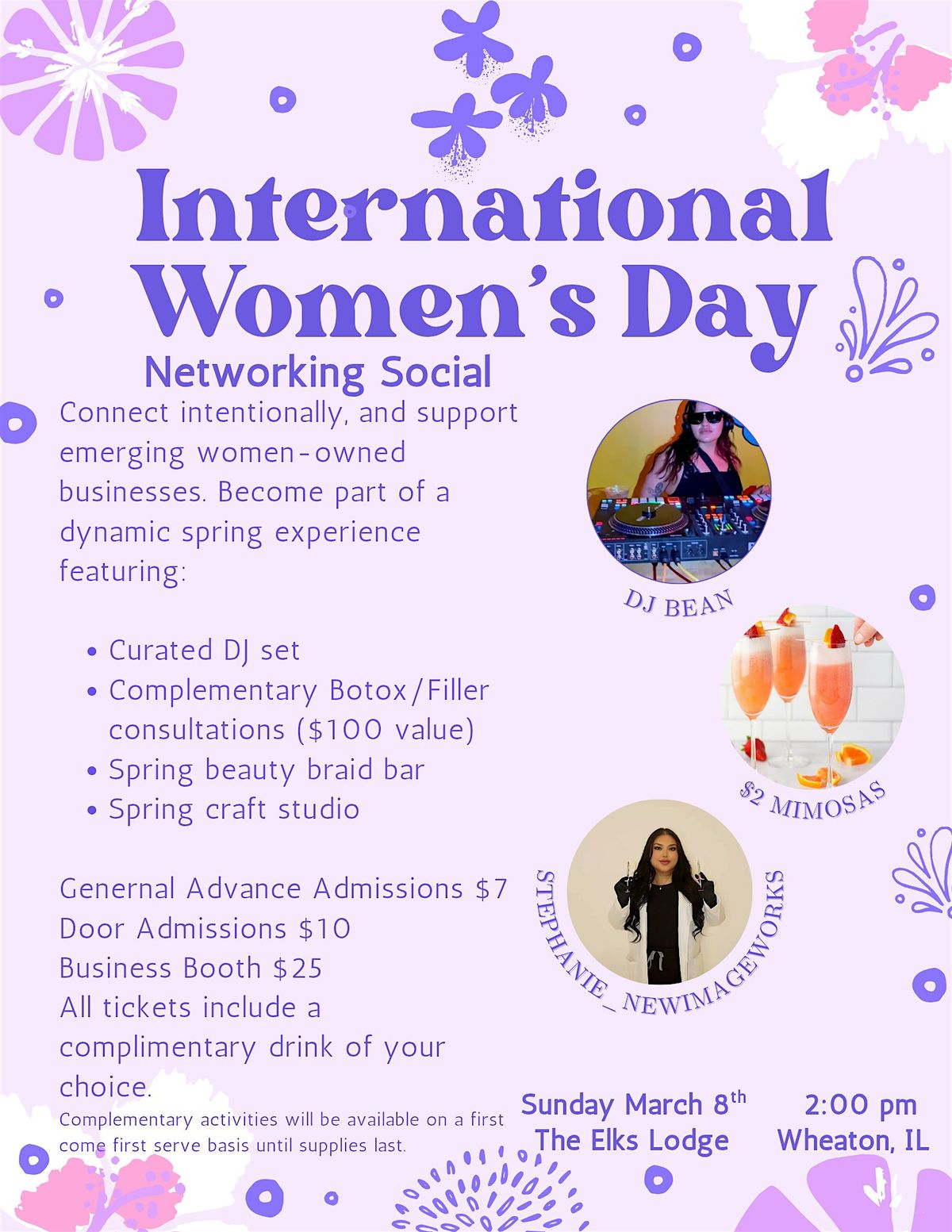 Hey there! Join us for an awesome in-person gathering celebrating Women's Day. Itβs a perfect chance to meet new people, share stories, and build meaningful connections with amazing women from all walks of life. Whether you're looking to expand your network or just have a great time, this casual social is the place to be! Enjoy 1 complimentary drink with a ticket purchase.