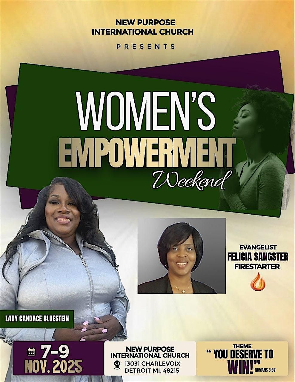 Join us for an unforgettable Women’s Empowerment Weekend presented by New Purpose International Church a dynamic three-day gathering designed to uplift, inspire, and equip women to walk boldly in their divine purpose.
