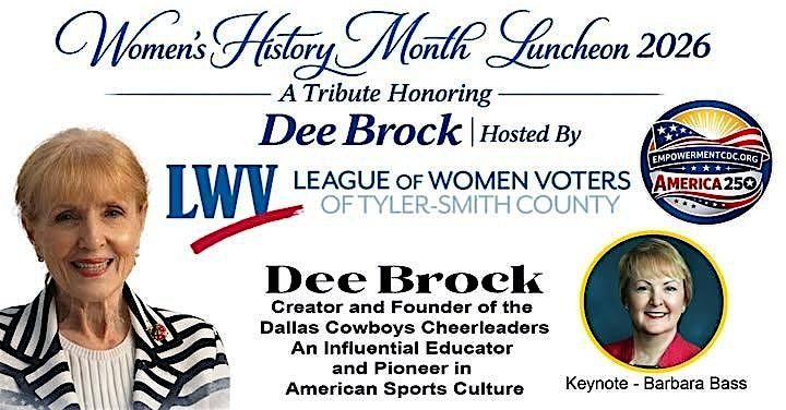 Hosted by the nonprofit League of Women Voters – Tyler/Smith County in partnership with the nonprofit 501(c)(3) organization Empowerment Community Development Corporation (EmpowermentCDC.org), this special luncheon brings together community leaders, educators, civic organizations, and supporters to celebrate women’s leadership and legacy.
