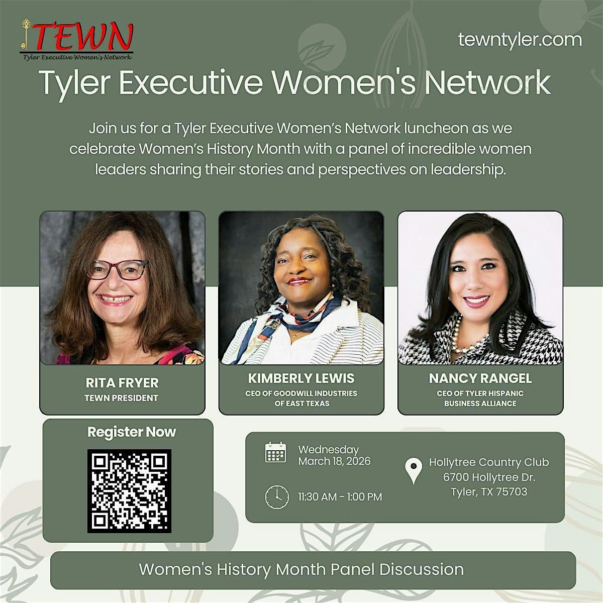 Join the Tyler Executive Women’s Network for a special luncheon celebrating Women’s History Month. This panel discussion will feature three incredible women leaders sharing their experiences, perspectives, and insights on leadership, community impact, and navigating the path as women in leadership.