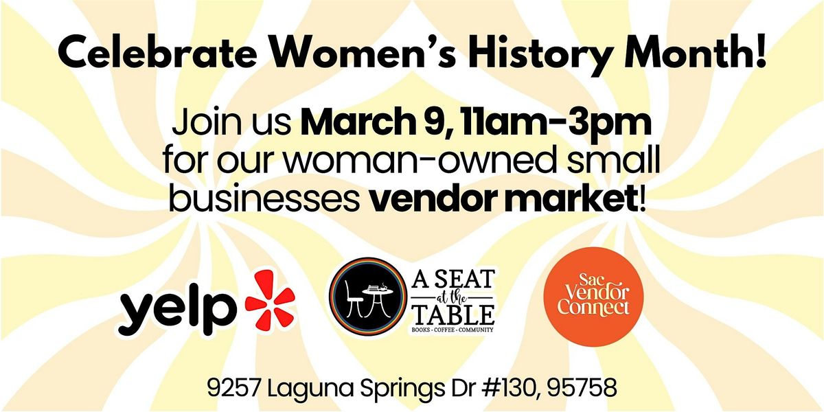Celebrate Women's History Month with a women-owned small business vendor market here at A Seat at the Table on March 9 starting at 11am!About this Event