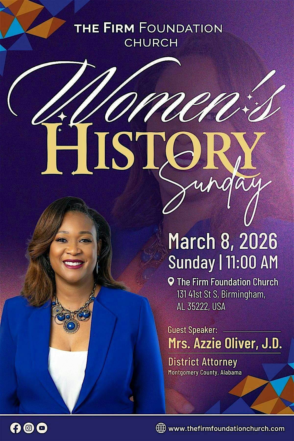 Come join us for Women's History Sunday at The Firm Foundation Church in Birmingham, AL, USA. This service will celebrate the achievements of women in every sector of life.