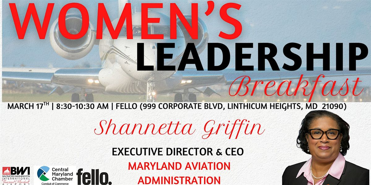 Join Central Maryland’s top women leaders for an exclusive breakfast conversation with Shannetta Griffin, Executive Director & CEO of the Maryland Aviation Administration.