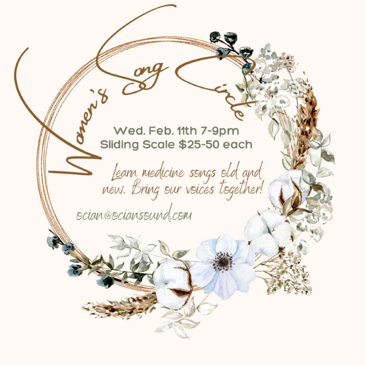 We are so honoured to welcome you sweet sisters (and identifying) to this medicine song circle! Join our voices and explore new and old songs that are sung in ceremonies across many different cultures!