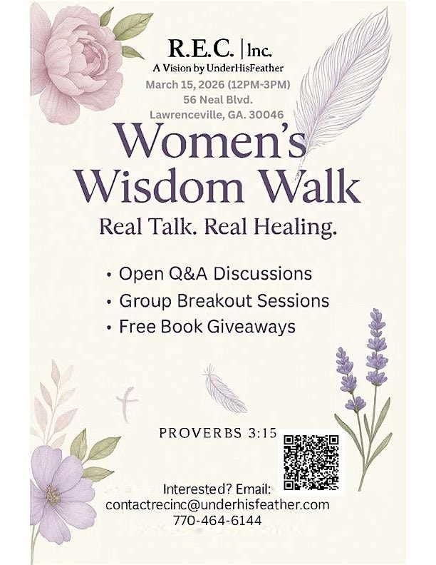 Hosted by R.E.C. Inc. | A Vision by UnderHis Feather, the Women's Wisdom Walk is a heart-filled community gathering designed to uplift, edify, and connect women through authentic conversation, shared wisdom, and collective healing.