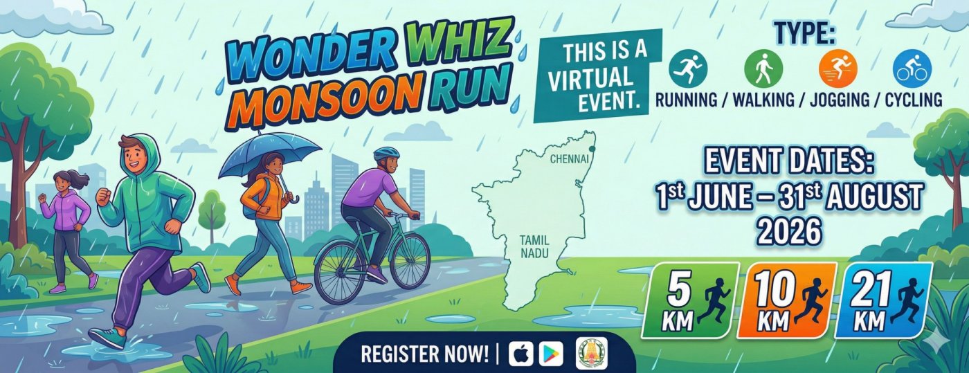 Get ready to stay active this monsoon with the Wonder Whiz Monsoon Run, a fun and flexible virtual fitness challenge open to all age groups!