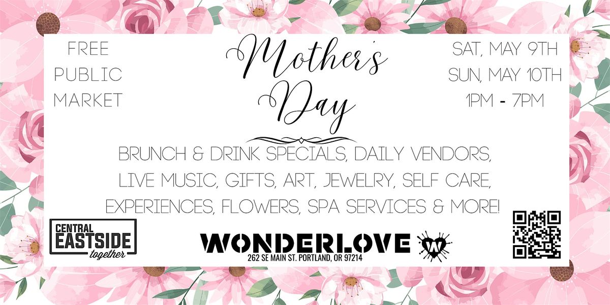 Join us for Wonderlove's Magical Gifts for Mother's Day Market, a celebration of the fabulous and pinnacle Mother's in our life at Wonderlove on May 9th-10th! This event is free to attend, all ages, and packed with fun!