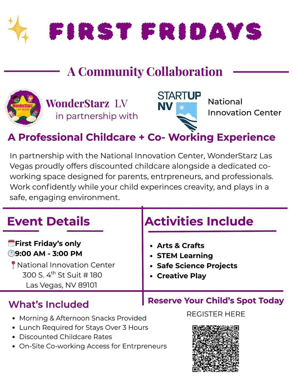WonderStarz LV is partnering with StartupNV & the National Innovation Center to bring you a childcare + co working experience.