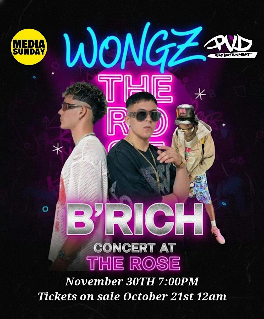 WATCH OUT! The Wongz & B'Rich collide for an explosive night of Latin Fire & Trap at The Rose, Nov 30th. Don't miss this movement!About this Event