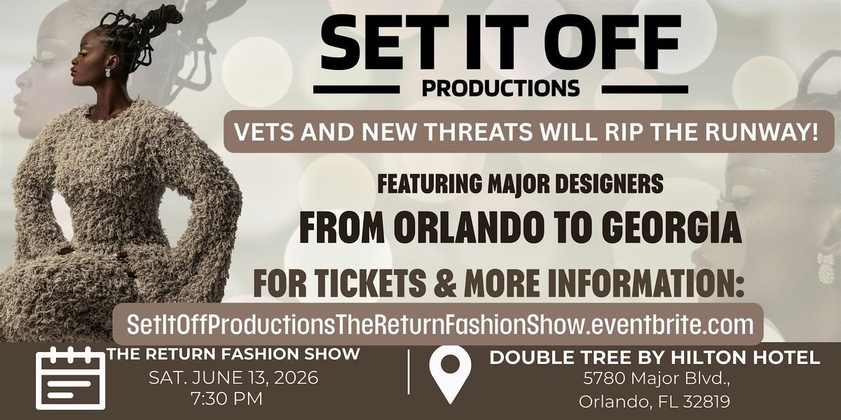 Get ready for an unforgettable night with Set It Off Productions as they bring back The Return Fashion Show in person! Experience the latest trends, bold styles, and stunning fashions from Florida and Georgia Designers. Whether you're a fashion fanatic or just looking for a fun night out, this event is the spot to be. Don’t miss the chance to see creativity come alive on the runway!