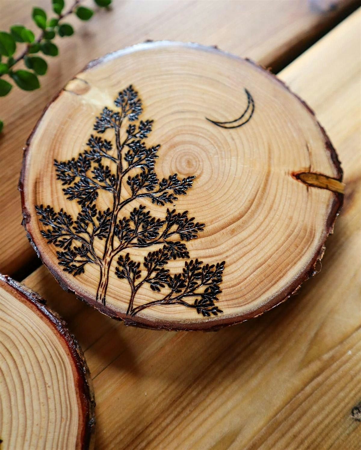 Each participant leaves with a finished wood-burned artwork of raw, organic, and deeply personal.