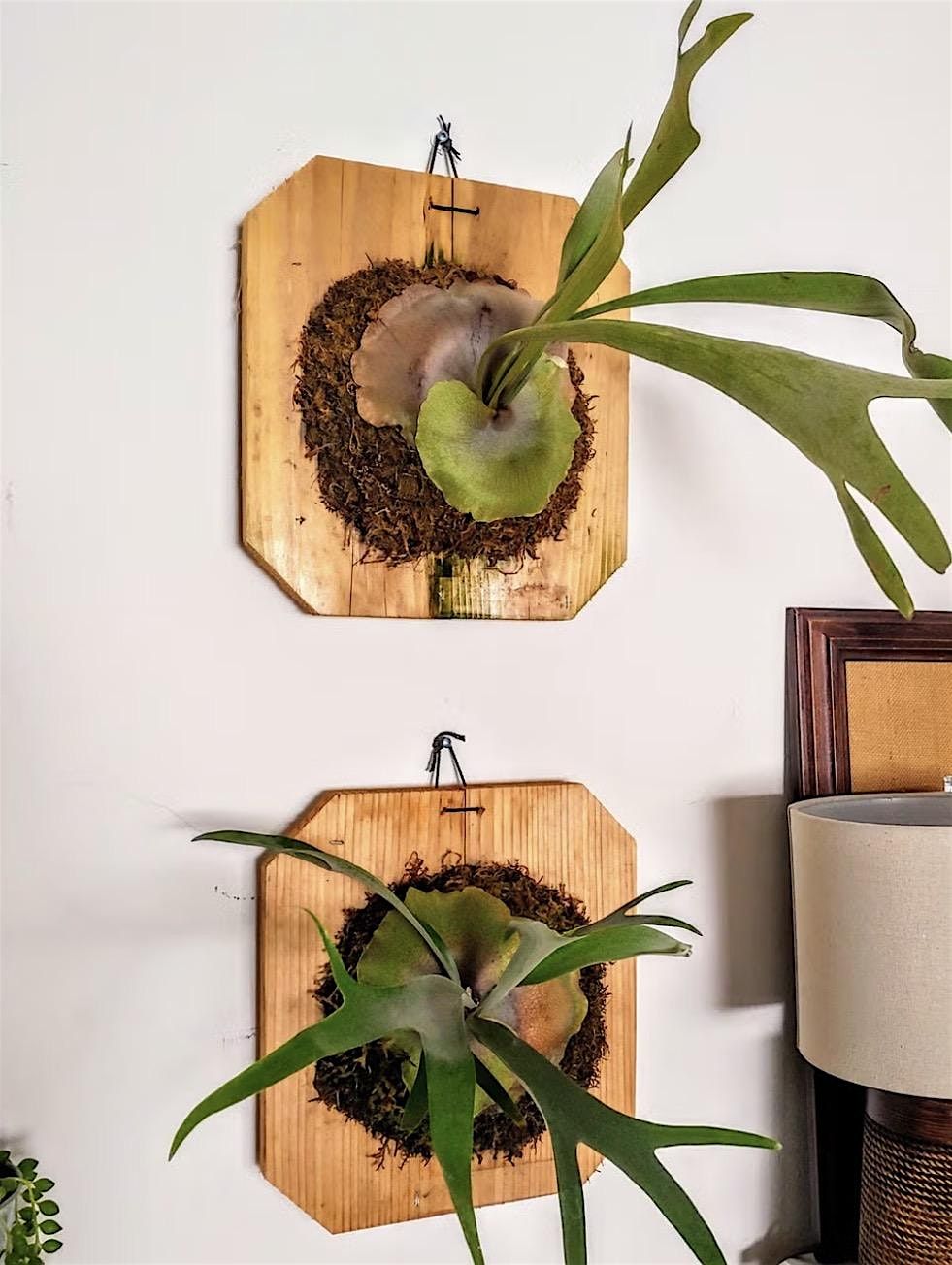 In this workshop we will create mounted stag horn ferns. We will be working with wood, moss, dirt and plants so prepare for an afternoon of play and creating. One drink of choice will be included to enjoy while you craft!