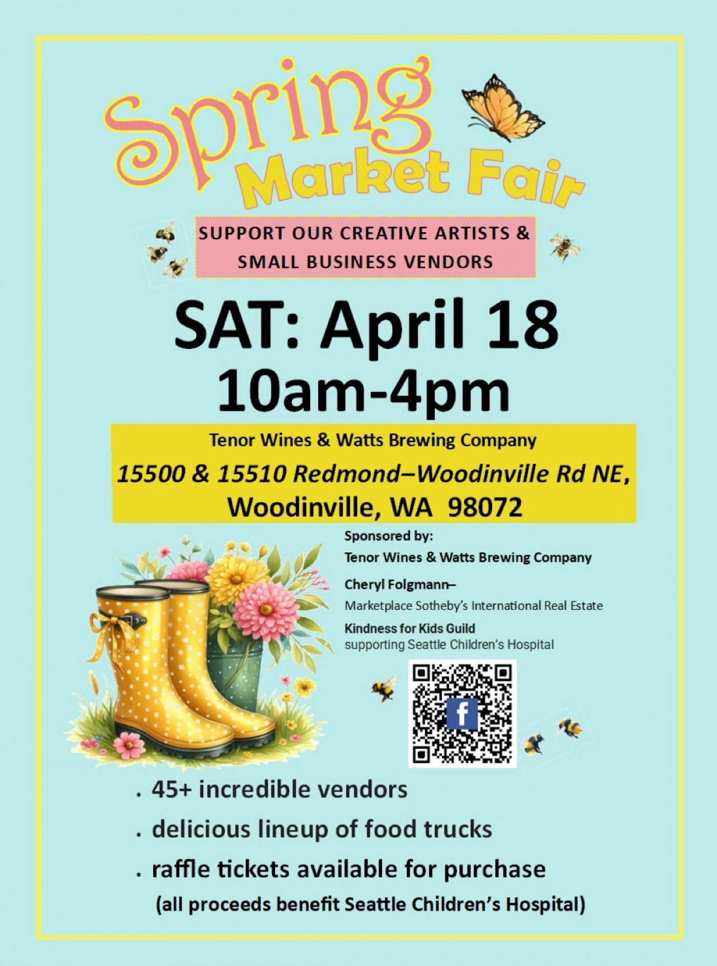 Spring is in the air, Seahawks spirit is everywhere, and the Woodinville Market Fair is bursting back to life! Join us on April 18th as we kick off a brand‑new season filled with incredible local vendors, delicious food trucks, raffle prizes, and all the warm, welcoming energy that makes our community shine. It’s the perfect way to celebrate fresh beginnings and the start of another unforgettable Woodinville Market Fair season. Both of our locations are family‑friendly spaces, perfect for spending a spring day together and celebrating fresh beginnings.